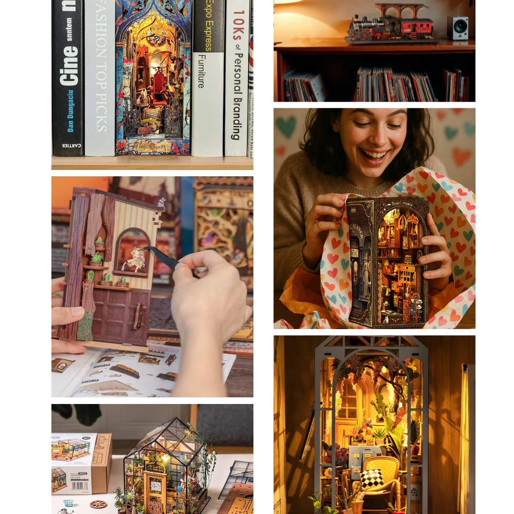 Ajoutez de la magie à votre bibliothèque avec notre collection Book Nook. Des maquettes miniatures qui transforment l'espace entre vos livres en un univers fascinant. Un petit détail qui fait toute la différence !