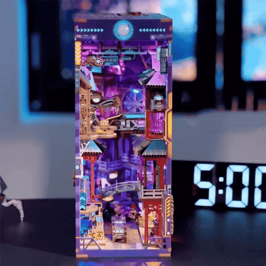 Pour les amateurs de mangas, d’animes et de néons multicolores, le Book Nook Manga est un must. Un décor qui vous baigne de lumières vives, des temples, de la brume et des silhouettes mystérieuses qui évoquent vos héros préférés. C’est comme un clin d’œil à votre passion, niché dans votre étagère.