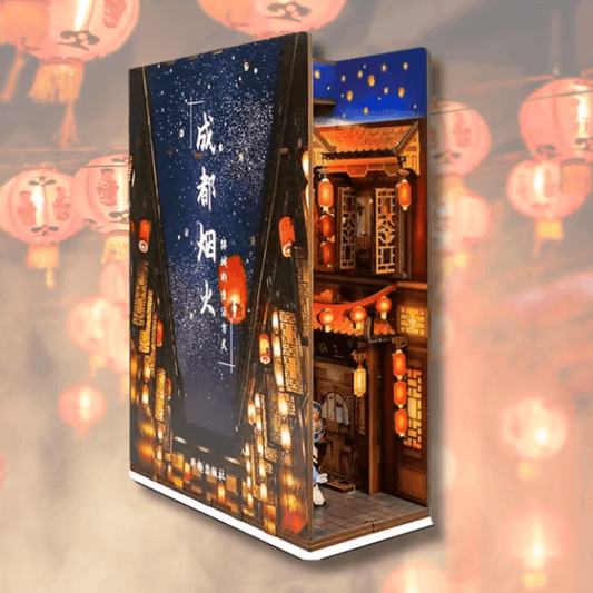 Le Book Nook, littéralement "coin de livre" en français, est une diorama miniature conçue pour s'insérer entre les ouvrages de votre bibliothèque. Cette création artistique représente généralement une ruelle, un magasin, ou un paysage fantastique, doté d'une profondeur surprenante malgré sa taille réduite. Alliant les techniques de la maquette traditionnelle et de l'artisanat du bois, ces petites scènes tridimensionnelles créent une illusion d'optique fascinante, comme si une porte s'ouvrait vers un autre monde depuis votre étagère.