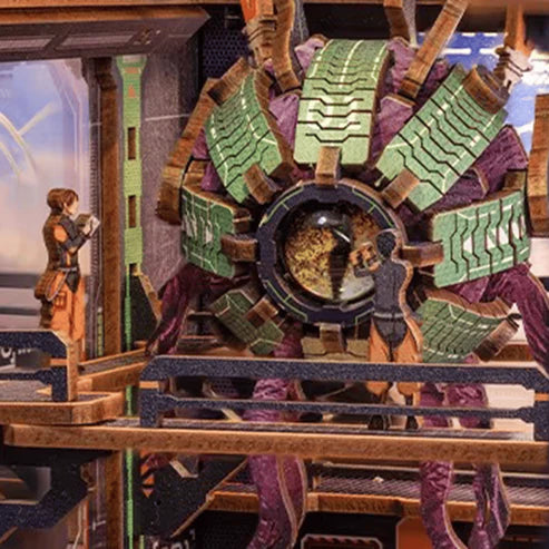 Le Book Nook Alien n’est pas seulement un simple accessoire de bibliothèque, c’est une véritable œuvre d’art qui éveille la curiosité. Chaque détail, des structures futuristes aux silhouettes d’aliens énigmatiques, est conçu pour apporter une touche de science-fiction et de mystère à votre espace de lecture. De plus, ses lumières LED intégrées donnent vie à la scène et créent une ambiance immersive, idéale pour les amateurs de mondes inconnus.