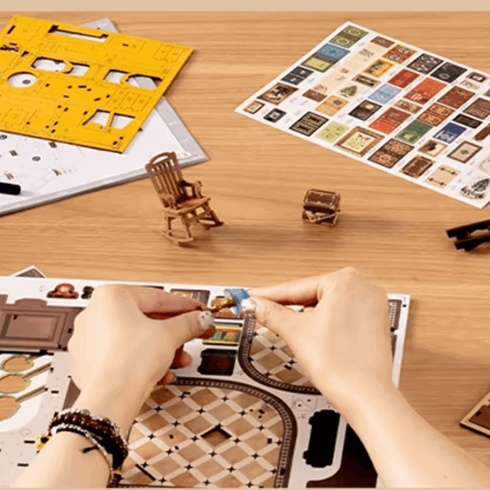 Le book nook est livré en kit, à assembler chez vous étape par étape. Que vous soyez passionné·e de loisirs créatifs ou simple amateur·rice d’univers cosy, ce diorama vous offrira plusieurs heures de détente, seul·e ou en famille.
