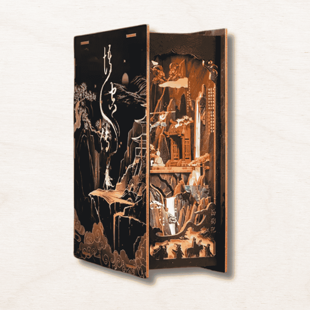Apportez une touche mythologique et poétique à votre bibliothèque avec le book nook manga : The Legend of Wukong. Inspirée du célèbre Voyage en Occident, cette maquette miniature en bois rend hommage au courage, à la sagesse et à l’esprit indomptable de Sun Wukong, le légendaire Roi des Singes.
