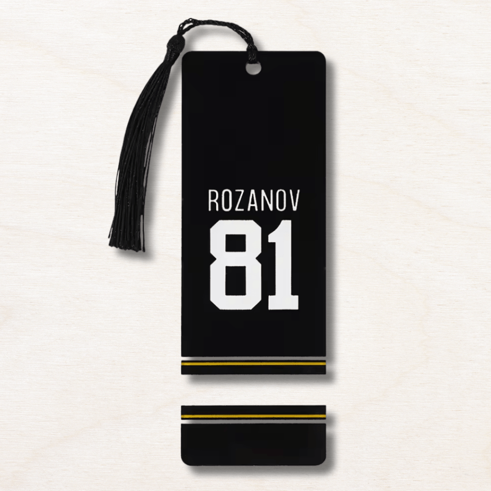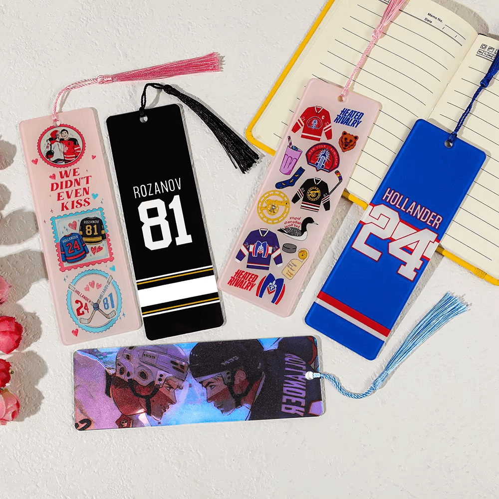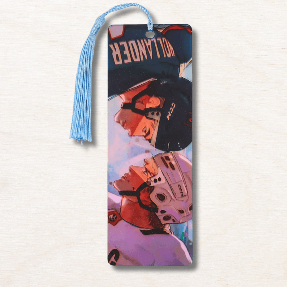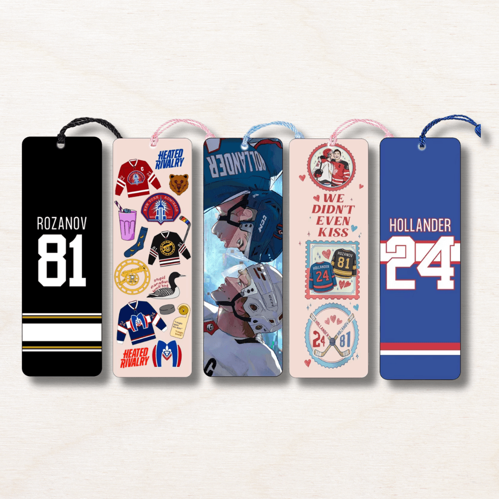Ce marque-page Heated Rivalry en acrylique est le compagnon de lecture idéal pour toutes les fans de la saga de Rachel Reid. Avec ses 5 designs collector du maillot noir Rozanov au jersey bleu Hollander en passant par la scène iconique du regard face caméra il y en a un pour chaque moment de l'histoire et chaque déclaration de team.